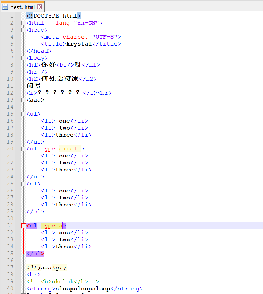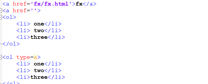 <ol> 有序列表 其中type类型值:A a I i 1 start属性表示起始值