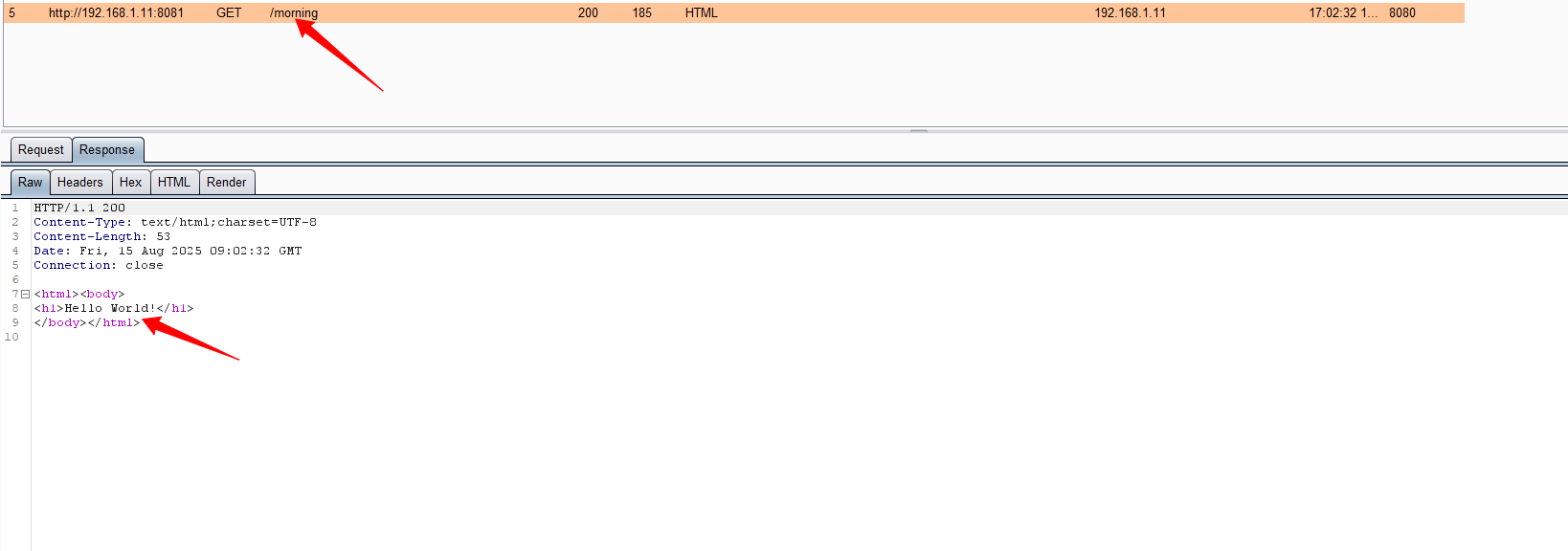 抓包看的话 虽然我们访问的url是/morning 但是返回的却是HelloServlet的内容