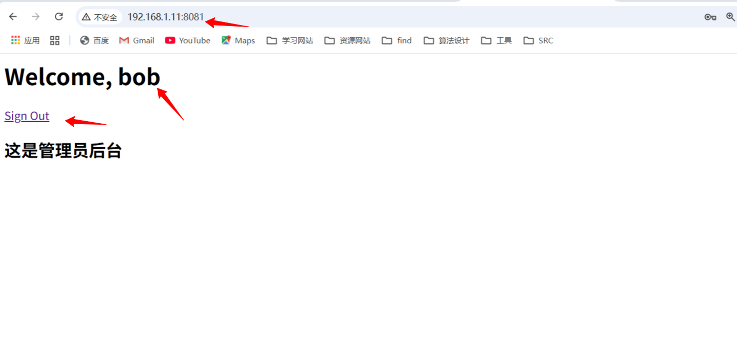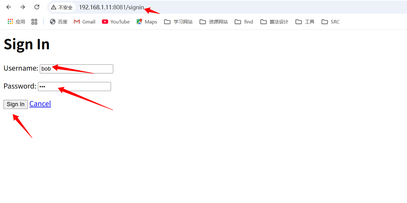 2.点击 Sign in进行登录 账号bob先输入错误的密码bob