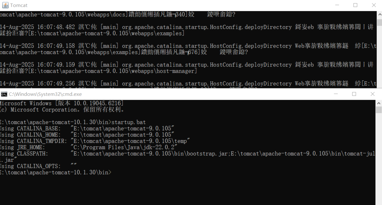 因为tomcat9.0.105先安装的 环境变量的路径是它的