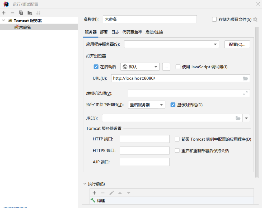 1.当前文件->编辑配置 点击+号新增配置 选择本地tomcat服务器