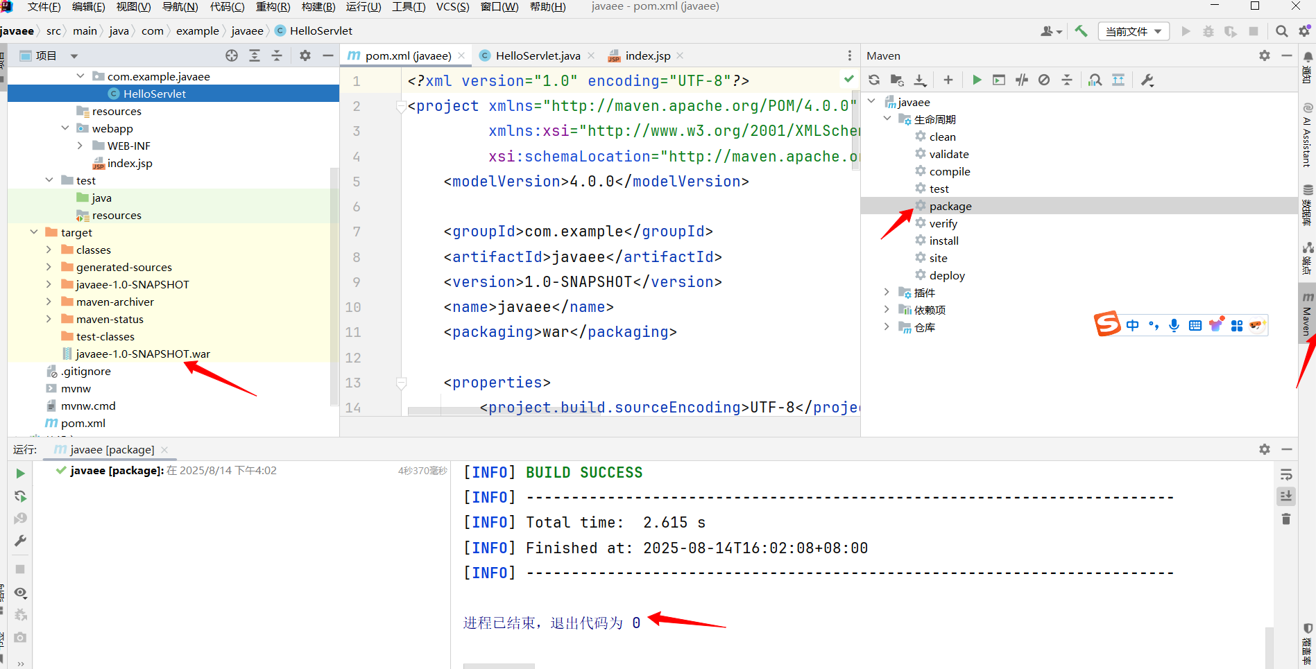 观察pom.xml 我们还会发现 它打包的格式是war文件