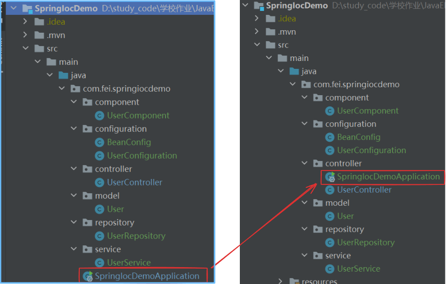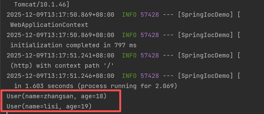 其实IoC我们在前面已经使用了,我们在前面文章讲到,在类上添加@RestController和@Controller注解,就是把这个对象交给Spring管理,Spring框架启动时就会加载该类。把对象交给Spring管理,就是IoC思想。