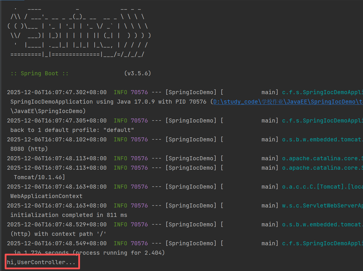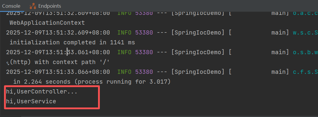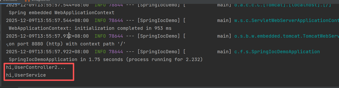 userService.sayHi();//注意这里调用UserService中的sayHi方法