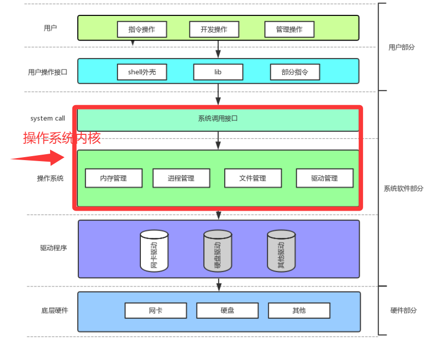 任何计算机都包含一个基本程序的集合,称为操作系统(简称OS),笼统的理解,操作系统包括: