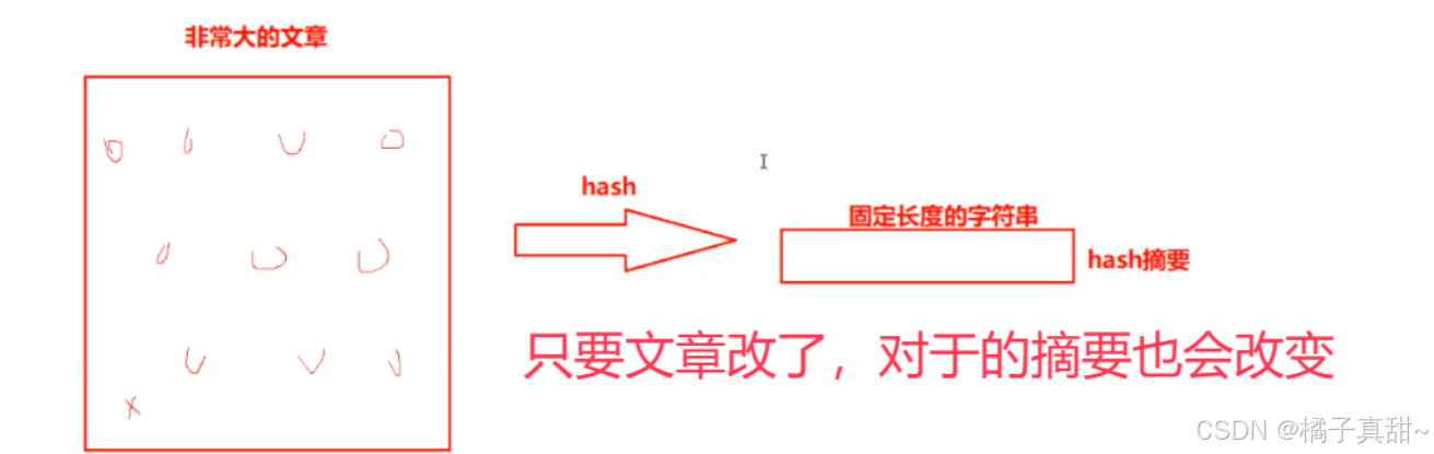 比如我们收到对方的数据 + 数据指纹。首先使用哈希算法对数据转换为字符串摘要,然后对比摘要和数据指纹。二者相等说明这个数据 和 数据指纹是正确的。