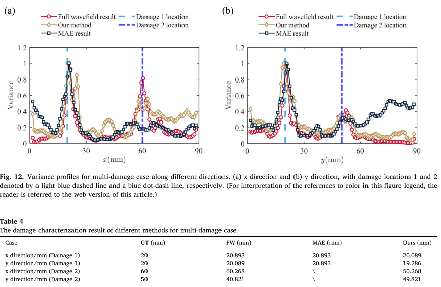 "虽然MAE在重建结果与原始结果之间取得了出色的一致性,但其在损伤区域的精度下降,表明在捕获全局传播模式与局部损伤交互细节之间存在不平衡。"