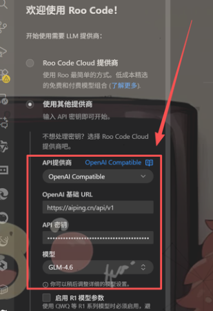 Roo Code本身并不直接提供AI模型,它需要调用第三方的大语言模型API来生成代码和建议。因此,安装插件后,下一步是配置模型和API密钥。Roo Code支持多种模型和API提供商,包括OpenAI、Anthropic、Google Gemini,以及国内的DeepSeek、百川等,甚至可以连接本地部署的模型。下面以接入AI Ping为例,介绍配置流程: