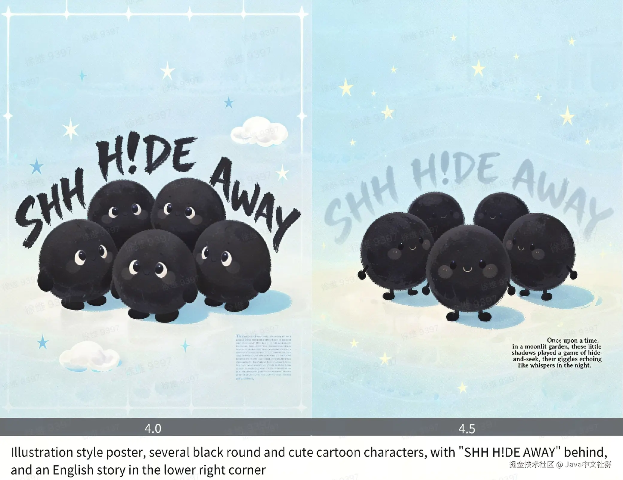 对比 4.0 和 4.5 生成的同款提示词,4.5 在构图、光影和整体氛围感上,明显上了一个台阶。