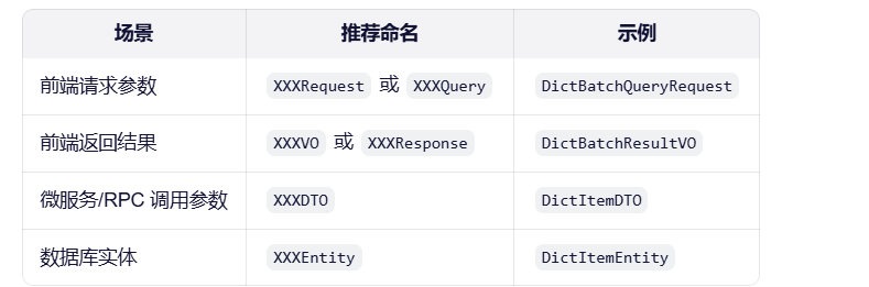 前面算是前沿,按照我个人的经验来看,下面的图和定义,很可能让人陷入到形而上学,实际上类只有一个核心的目的:谁用 || 用于谁 || 作用于谁 || 返回给谁 举个例子:VO给谁用,给前端用,那就是需要返回给前端,那就是在Controlller 层定义返回值(return value)。