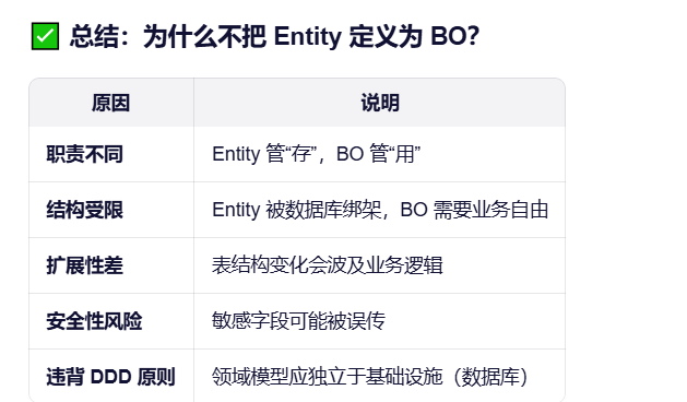 简单项目:可用 Entity 兼做 BO,但不要直接暴露给 Controller