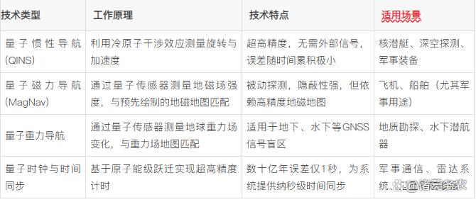 为了让你快速了解量子导航的几种主要技术路径及其特点,我准备了一个表格: