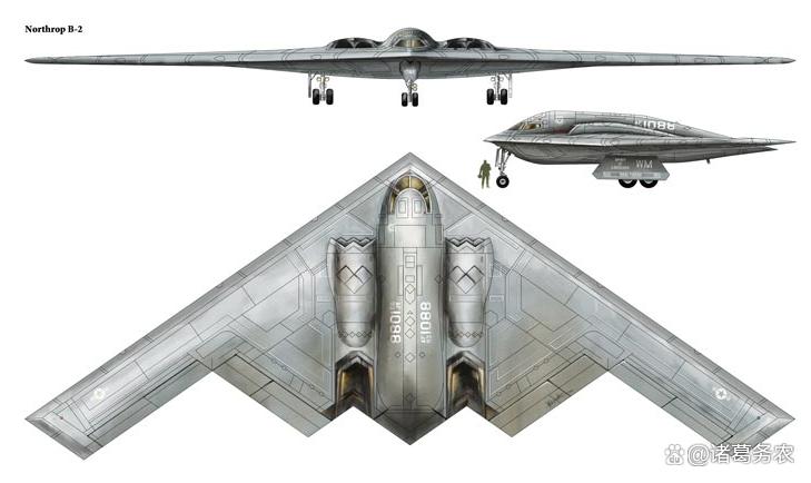 美国空军B-2"幽灵"隐形轰炸机三视图