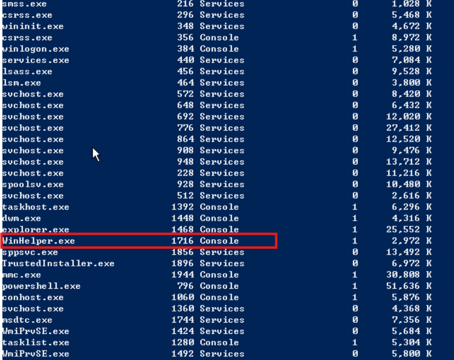 回到前面的进程枚举排查,由此确定了后门文件名称:WinHelper.exe