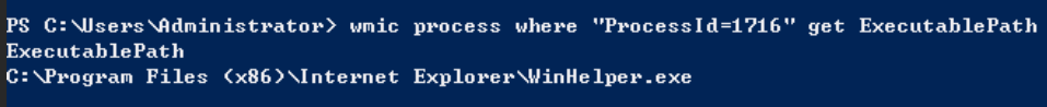 wmic process where "ProcessId=1716" get ExecutablePath