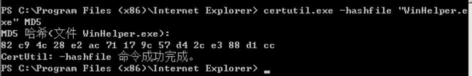 certutil -hashfile "WinHelper.exe" MD5