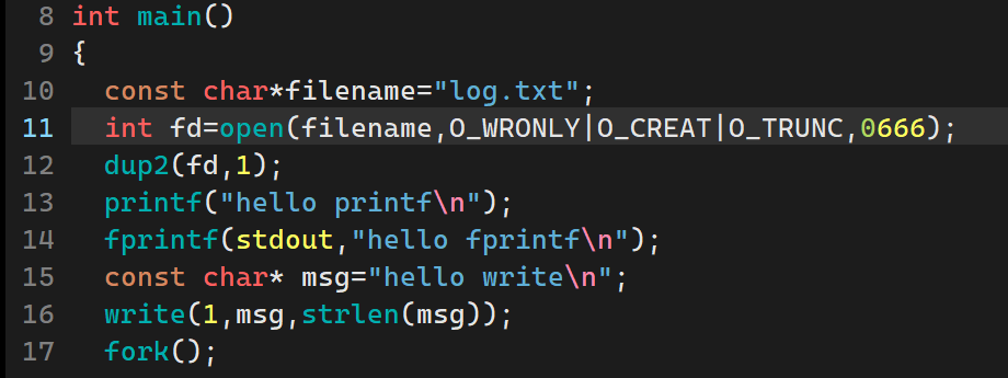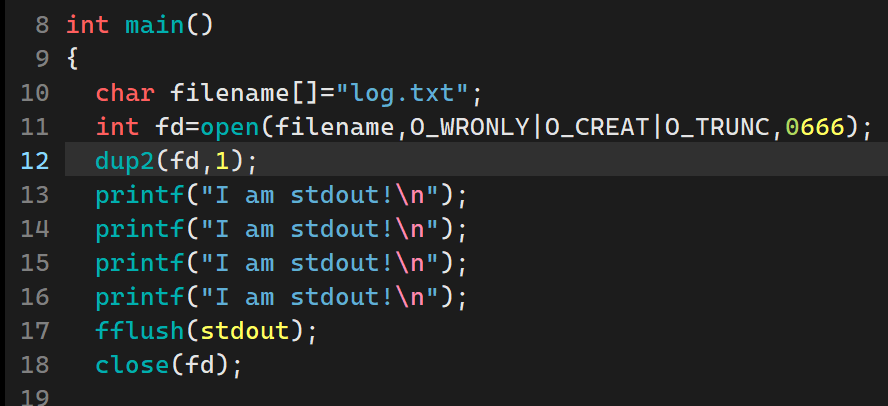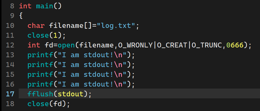 原因是我们将fd=1的stdout关闭了,然后打开log.txt就给他分配空缺的fd=1.此时对stdout输出就是对log.txt输出。至于为什么代码需要加上fflush,这个后面缓冲区部分再做讨论。