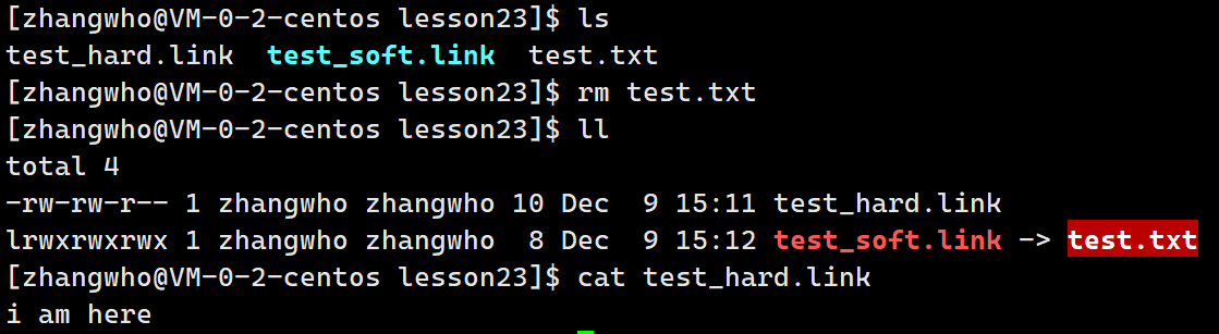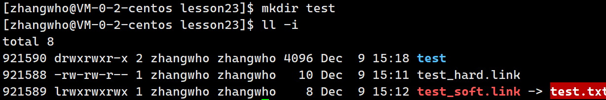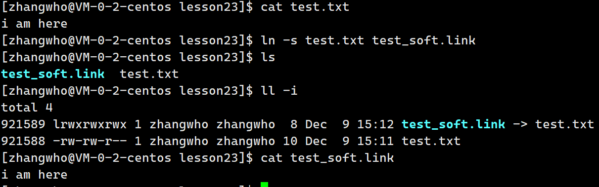 可以看到我们的软链接文件有独立的inode,因此是一个独立的文件。