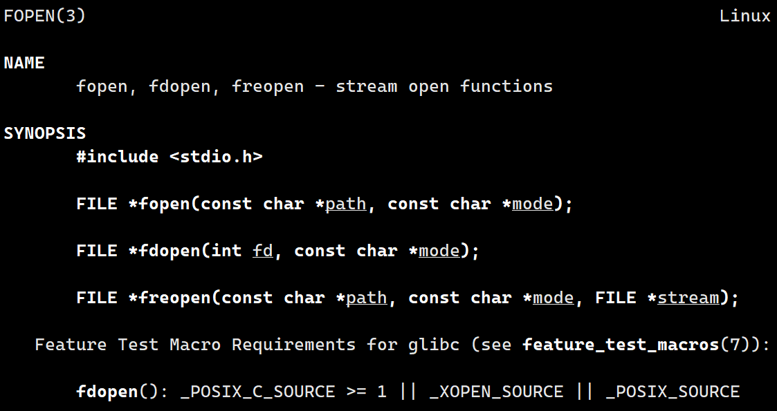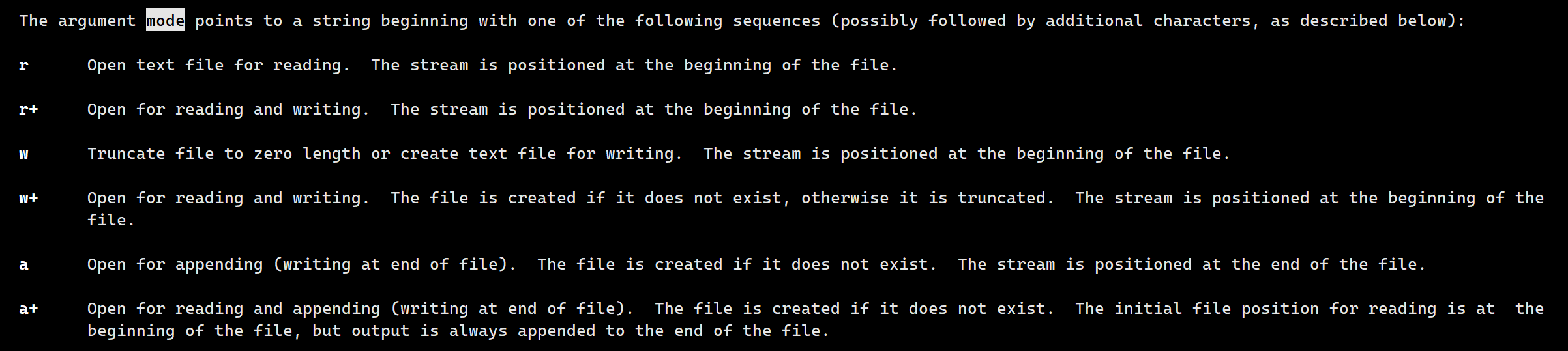 我们常用的代开操作就是fopen。输入要打开文件的路径(默认会在前面加上当前进程工作路径),以及打开的形式: