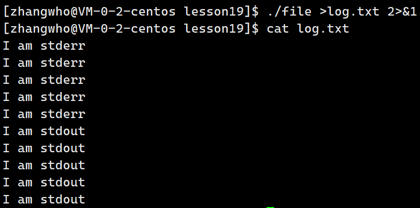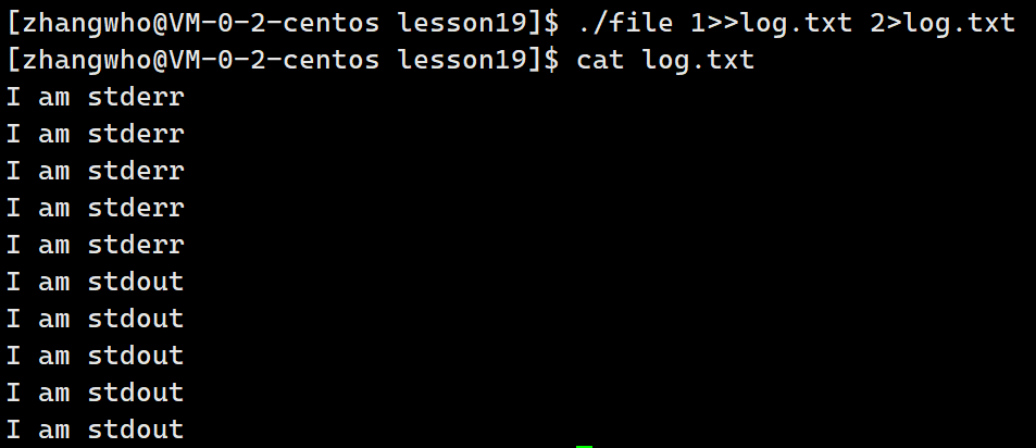 不过注意到stderr的数据被覆盖了,因为我们写的方式是从头开始写自然会覆盖,正确的做法可以这样: