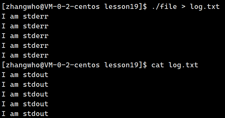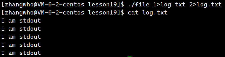 可以看到原本输出到stdout的内容输出到了log.txt。
