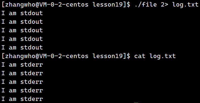 可以看到都输出到了显示器。那如果我们重定向到log.txt呢?