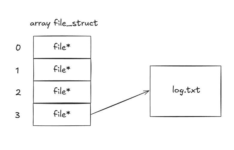 事实上我们每个进程都会维护一个文件列表,类似如下: