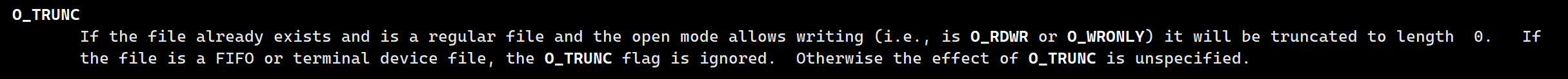 因此我们如果想效仿fopen中只写方式打开文件,就需要传入O_WRONLY O_CREAT,但是这样打开不会默认清空文件,因此还需要传入