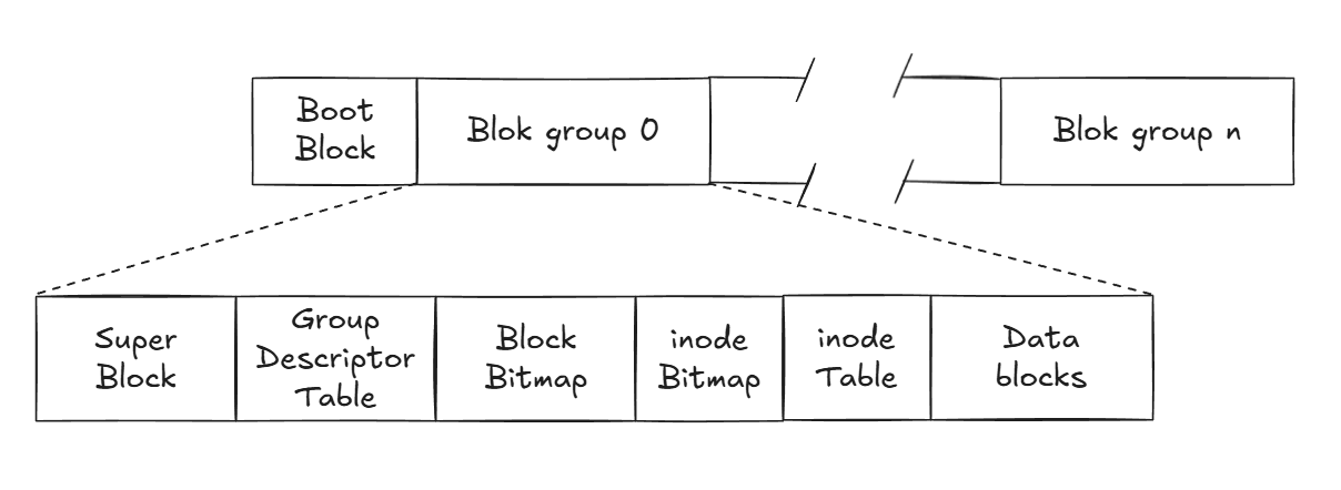 Super Block记录的是整个分区的信息。按照效率来说Super Block理应只有一个,但是考虑文件系统的鲁棒性,一个分区通常有两三个组会有Super Block。