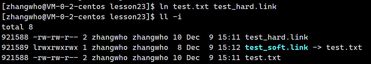 我们可以通过指令ln 源文件 目标文件 形成硬链接: