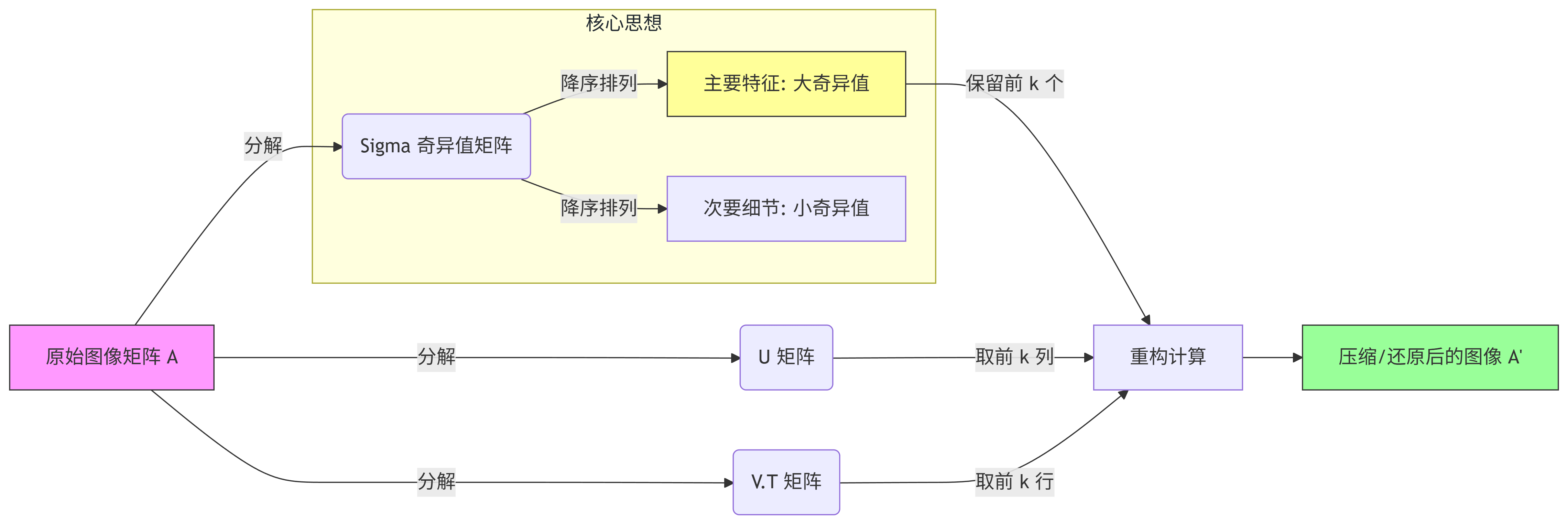 在图像处理和机器学习领域,奇异值分解(Singular Value Decomposition, SVD) 是一种非常强大的矩阵分解算法。它不仅可以用于降维(如 PCA),还可以用于图像压缩。