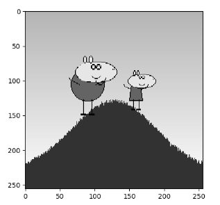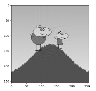 下面是基于 scipy 和 numpy 实现 SVD 图像重构的代码。代码中使用的图片 peppa_and_daddy_on_mountain.bmp 是一张 256x256 的单通道灰度图。