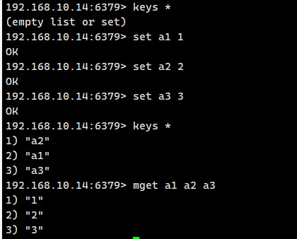 mget k1 k2 k3 # 查看k1,k2,k3对应的值