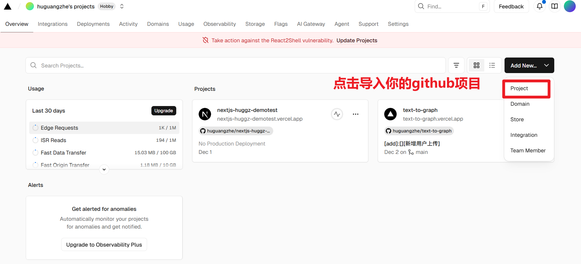 - 进入你的 Vercel 项目