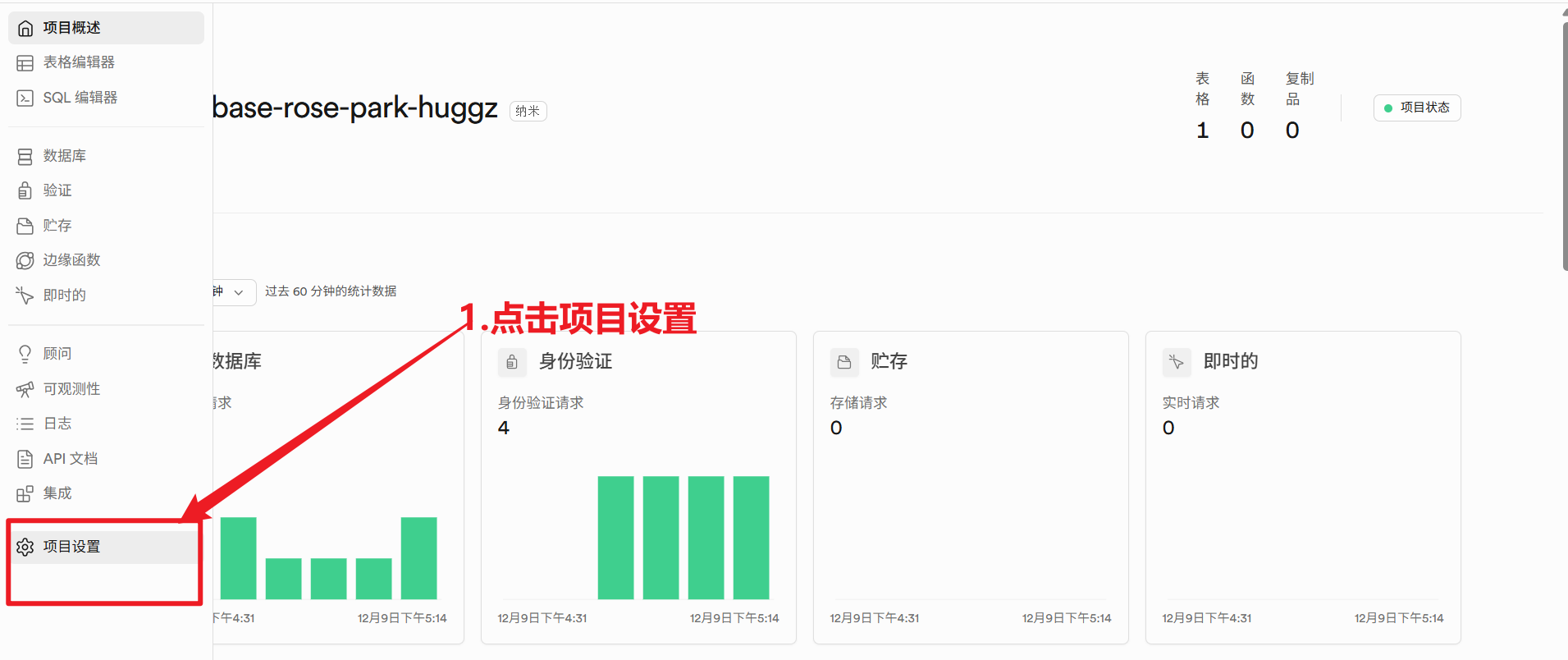 - 在 Supabase 控制台,点击 Settings (齿轮图标)