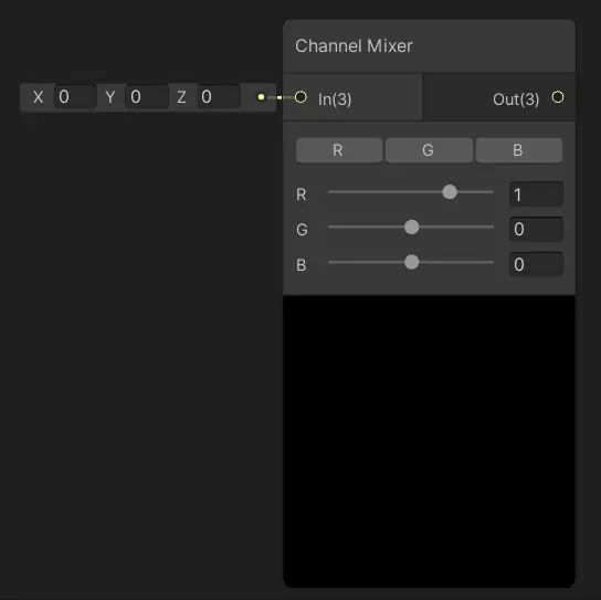 - 切换按钮阵列(R、G、B):用于选择要编辑的输出通道。例如,选择红色输出通道时,开发者可以调整绿色和蓝色输入对该通道的贡献,实现精确的色彩平衡。