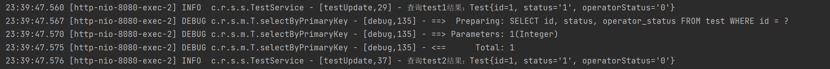 如上图所示,并没有更新数据库,但是查询的 test2 的 operatorStatus 是1。这是因为: