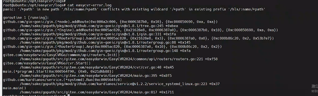 现场对EasyCVR程序启动过程进行排查,查看日志时发现/hls/:name/*path相关的错误信息,提示HLS服务异常。