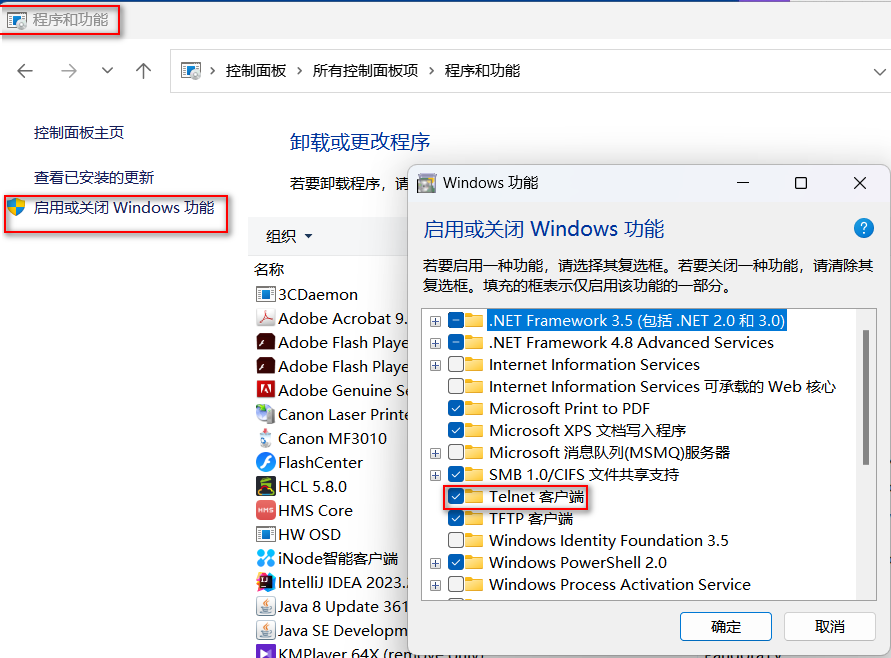 那是因为win98以后的windows系统为了安全,关闭了telnet的客户端,需要在控制面板"程序"里面开启telnet客户端: