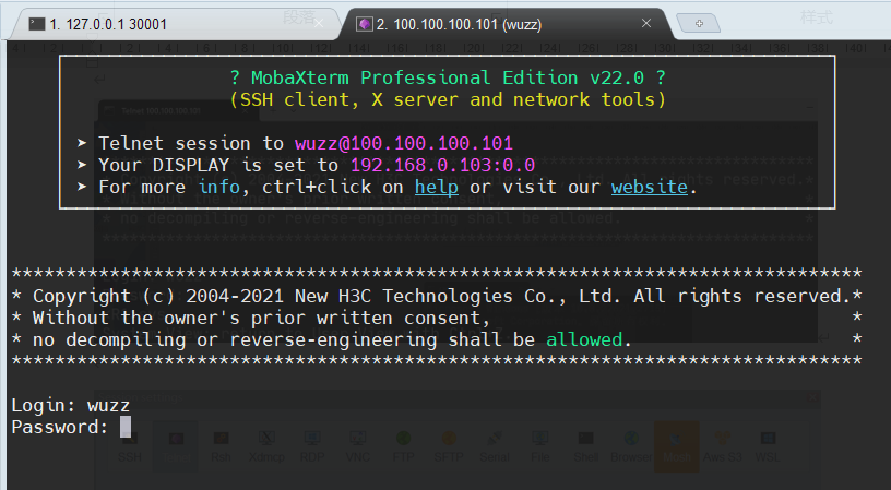 还可以用ssh终端工具xshell、SecureCRT或Mobaxterm登录,下面用Mobaxterm登录: