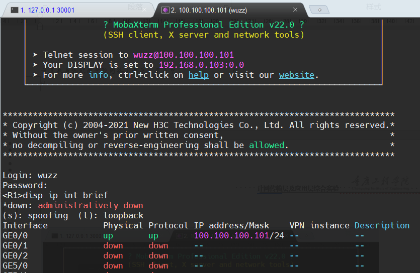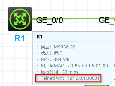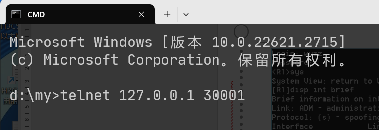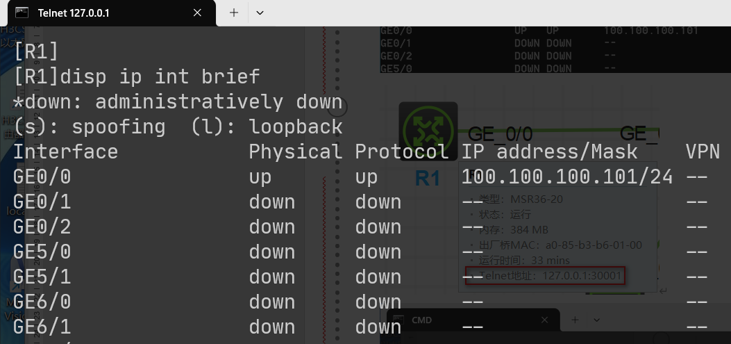 直接登录telnet 127.0.0.1:30001也可以走捷径登录R1: