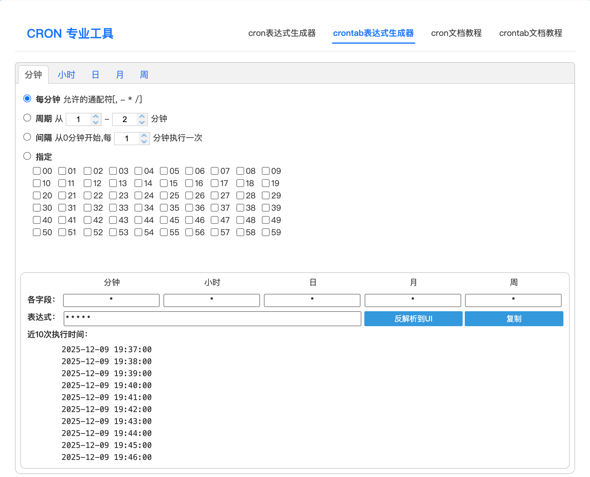 可视化生成:通过图形界面直接选择任务触发的时间和频率,无需记忆复杂语法,几秒钟就能生成准确表达式。