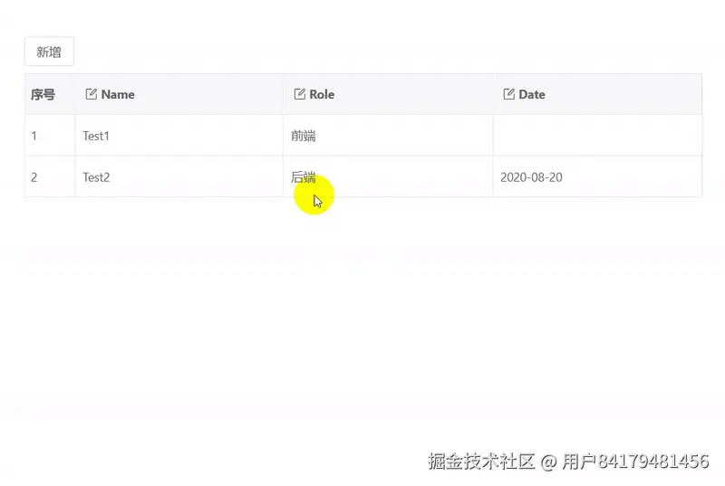 { id: 10002, name: 'Test2', nickname: 'T2', role: '2', age: 22, address: 'Guangzhou', date12: '', date13: '2020-08-20' }
