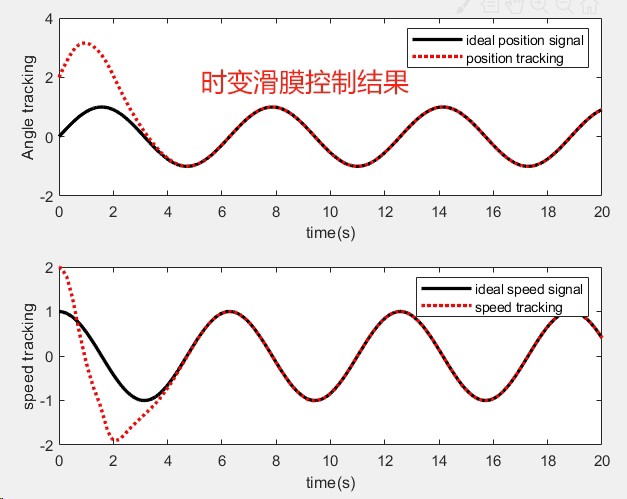 86.基于matlab的时变滑膜仿真,可应用于非线性控制,输出角度和速度跟踪,并与理论结果比较,并得到控制误差结果。 具有传统二阶滑模、相对阶1螺旋算法、相对阶1超螺旋算法。 程序已调通,可直接运行。