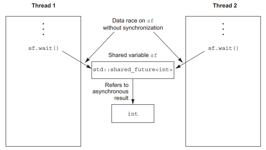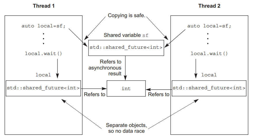 上面代码中,在std::future的析构函数运行之前(退出foo时),不能保证所有线程都已经完成,因为do_more_stuff那部分是另外的线程在执行。