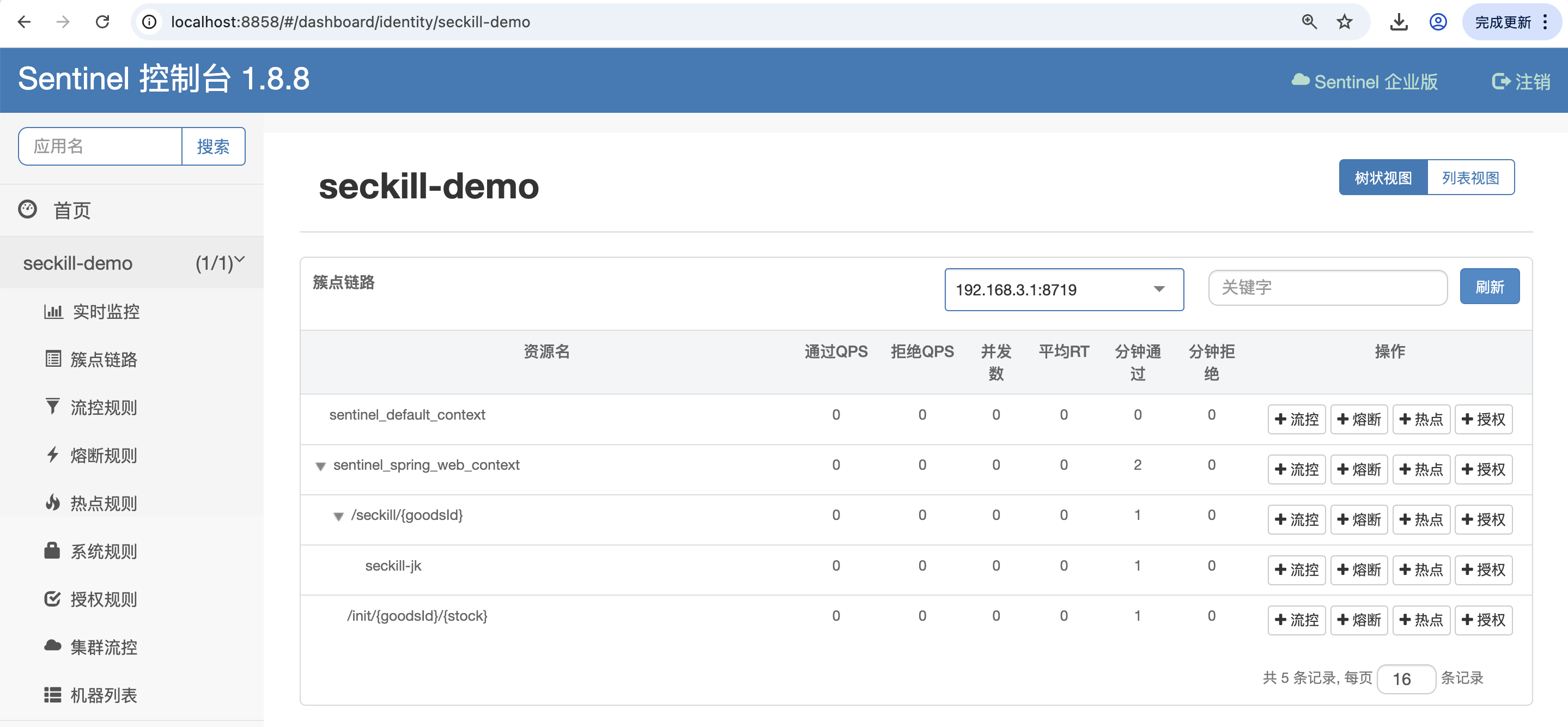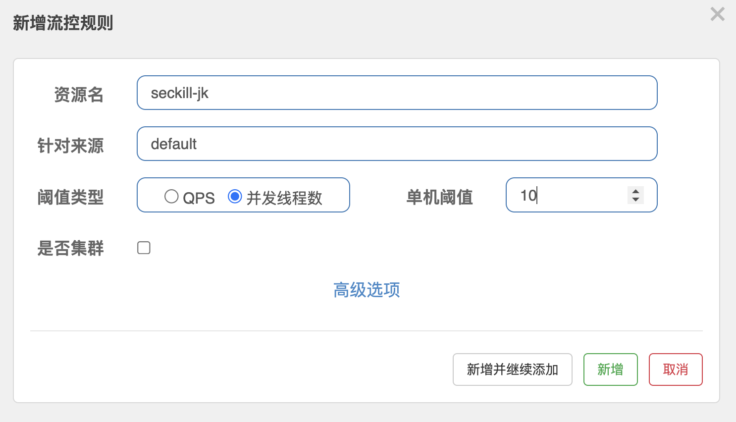 | 线程数 | 同上 | 流控 | FlowRule(类型=THREAD) |