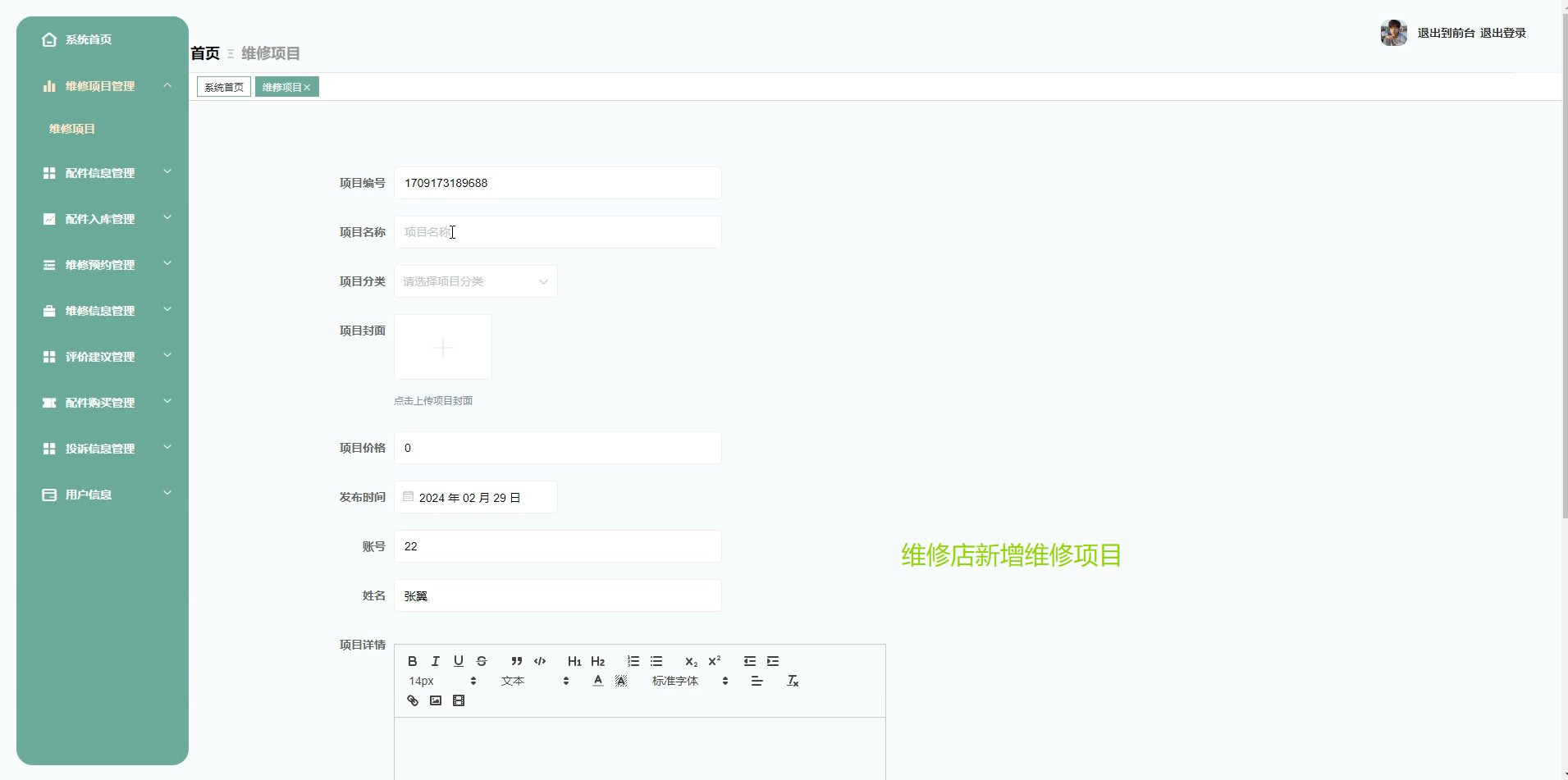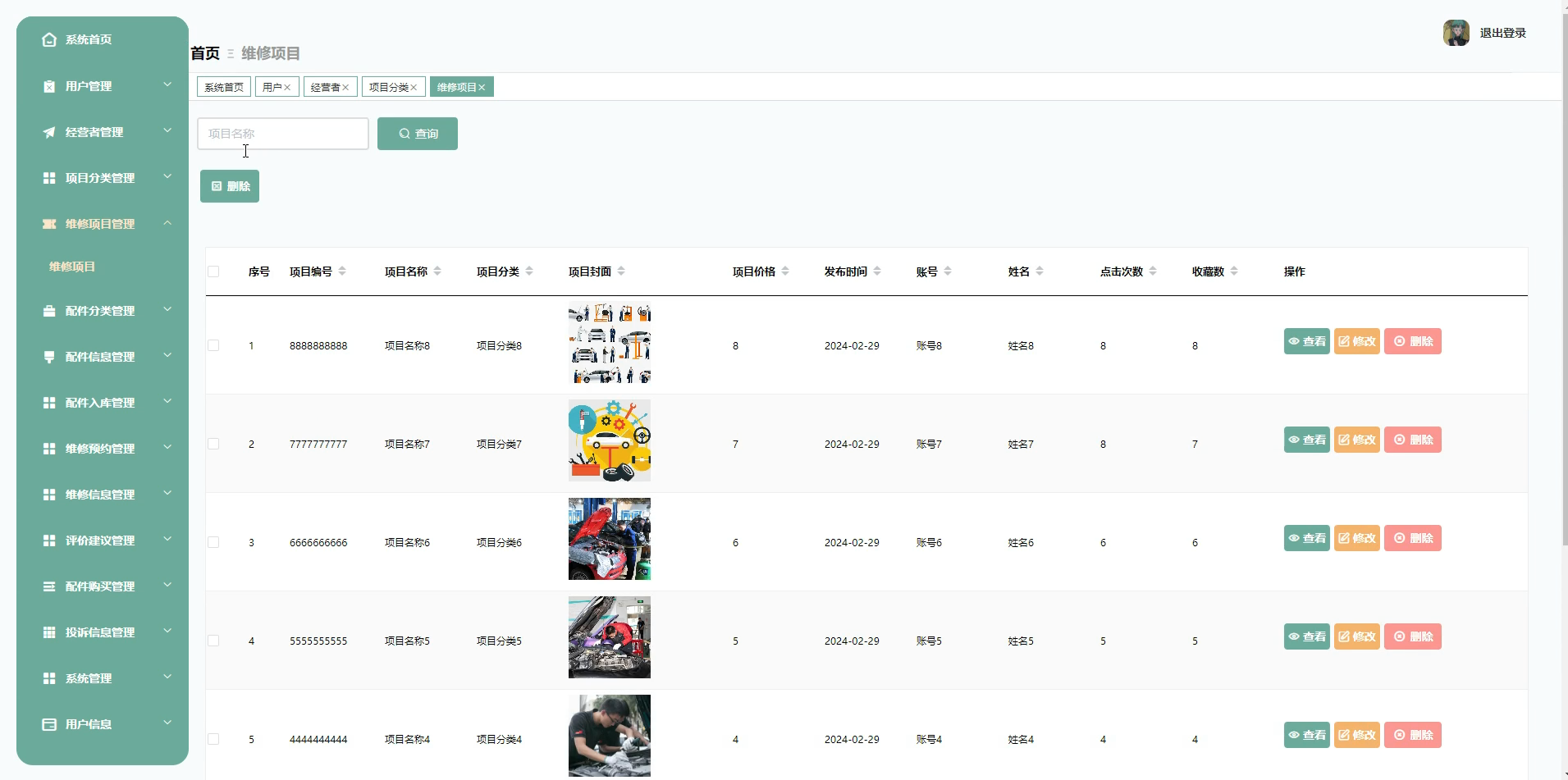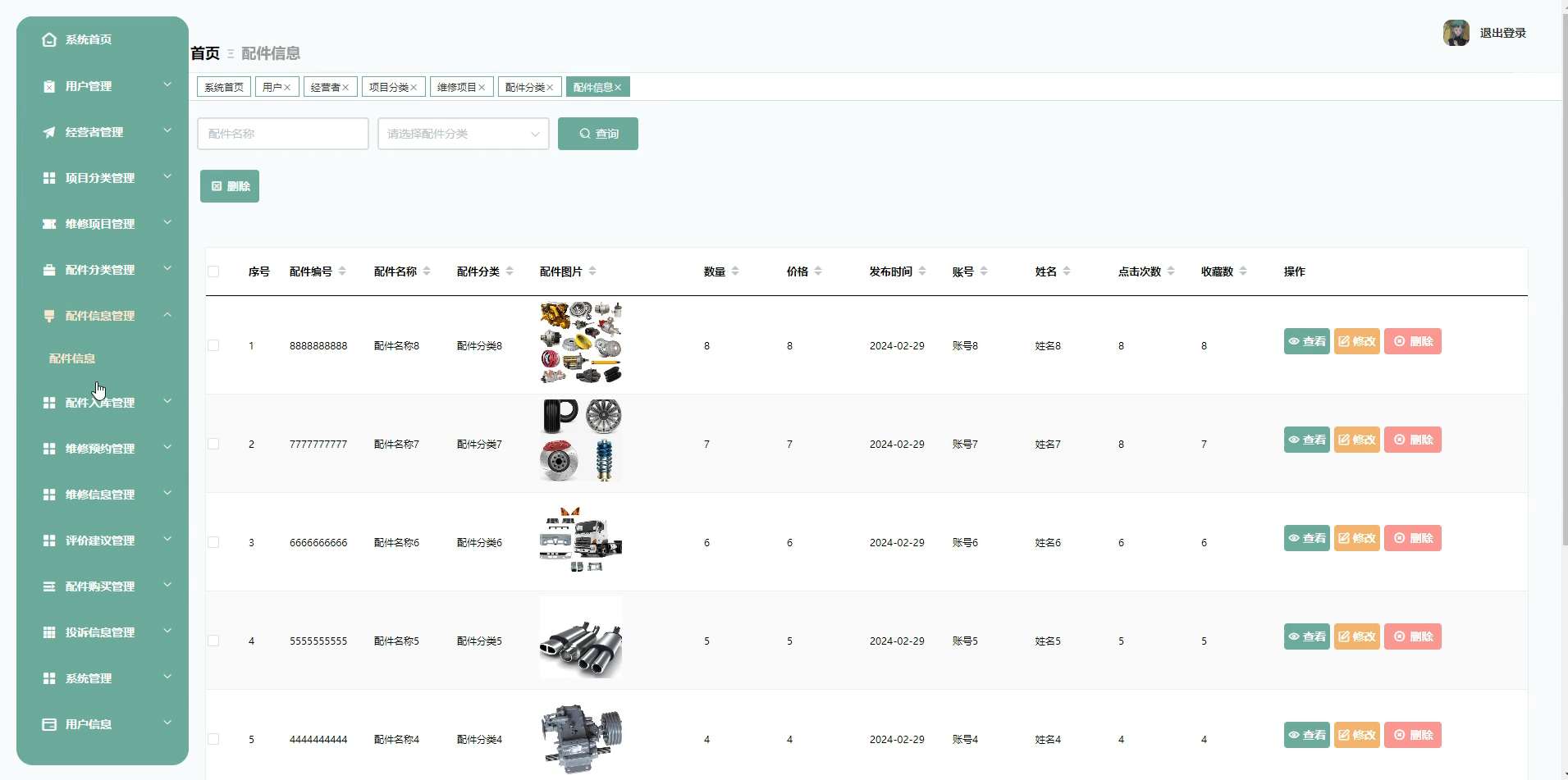 客户与车辆管理: 客户信息、车辆档案、维修历史记录。