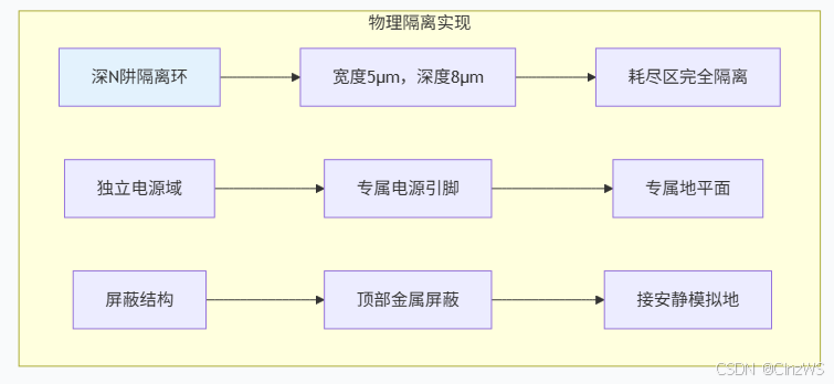 设计措施:三重深N阱隔离,耗尽区宽度 > 5μm