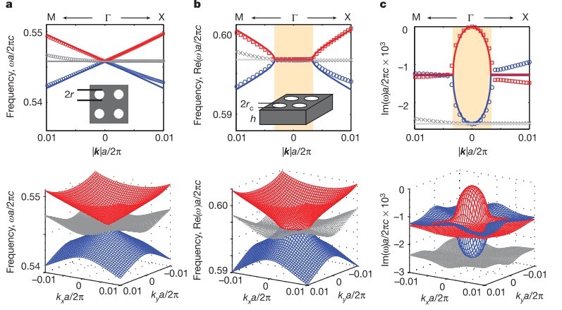 狄拉克锥是能带结构中一种特殊的锥形色散关系,在光子晶体里它与特殊的对称性和简并密切相关。
