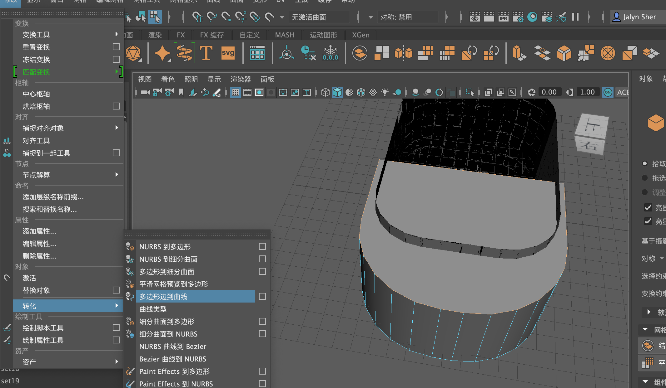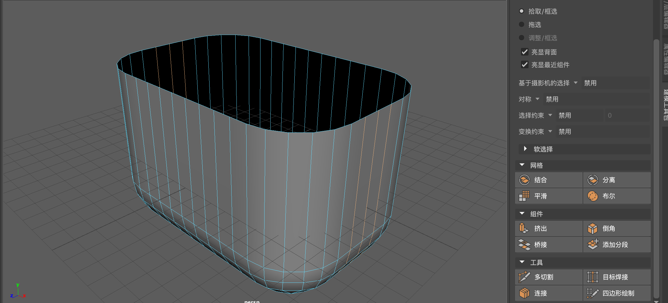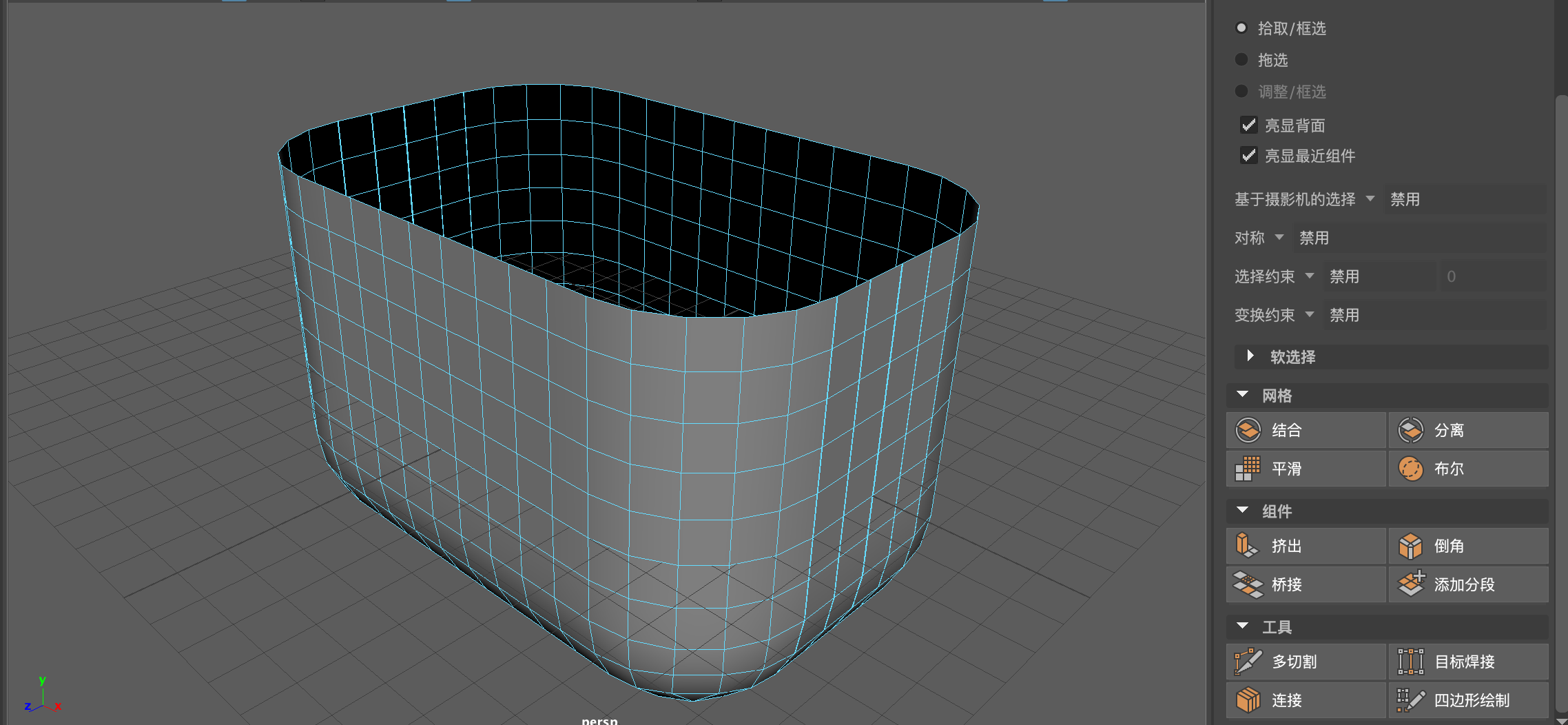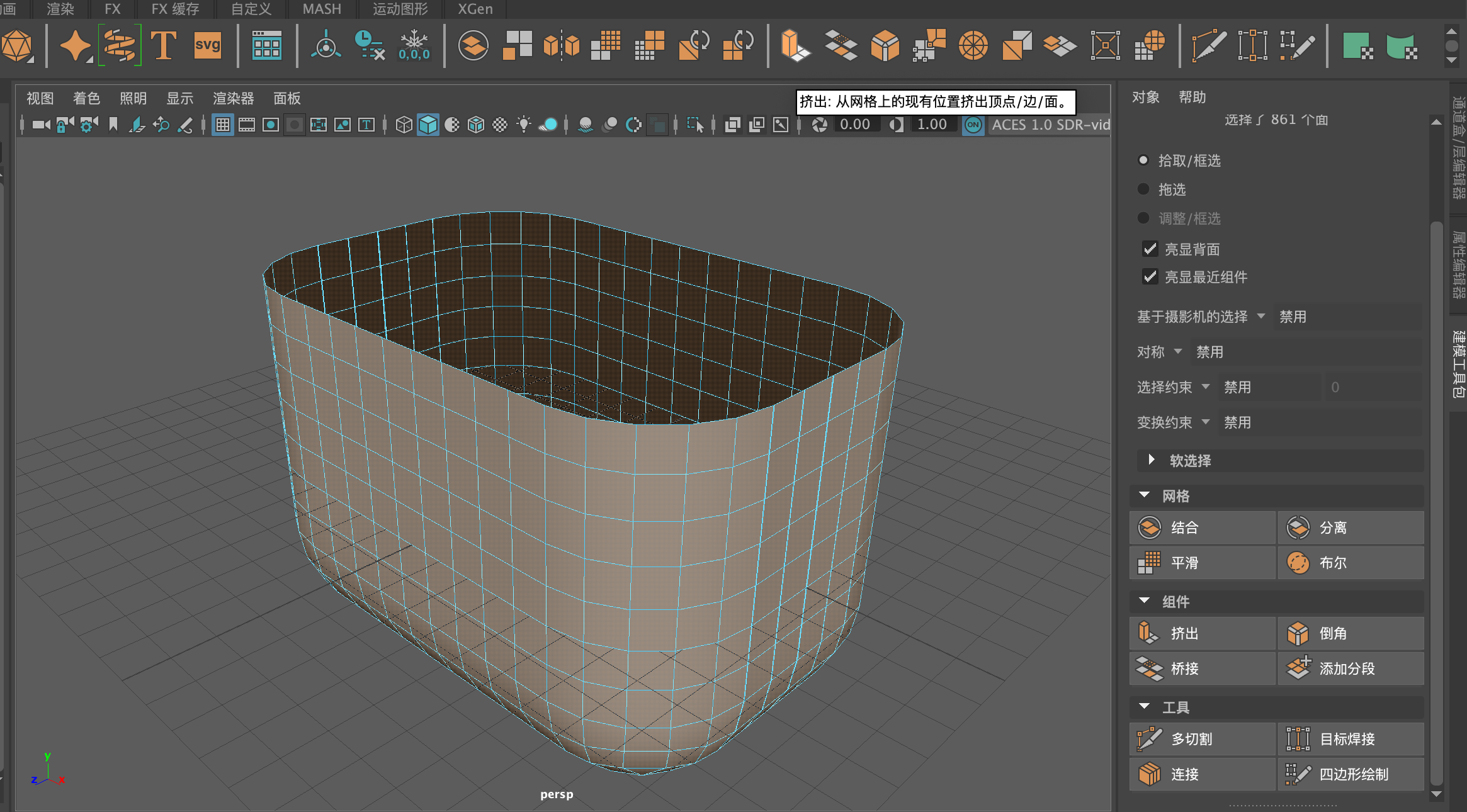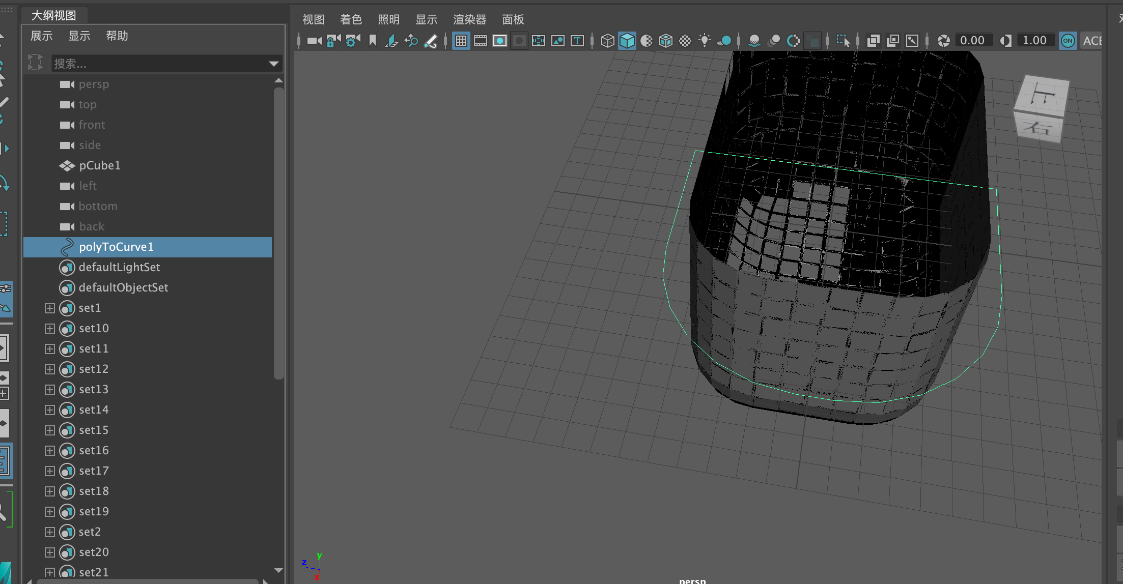 (20)单击"多边形建模"工具架上的"扫描网格"图标